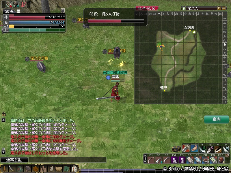その落ち武者さんが襲ってきたので戦ってたんだけど、敵勢力さんの近くに行っちゃいけないんですね(;Д;`)! 一緒にやっつけよーとか安易な考えじゃいけなかったの、現実(じゃないけど)は厳しいものだったの。